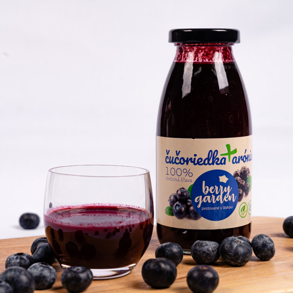 Dary z rodinnej farmy premenené na výnimočný nápoj. Táto 100 % ovocná šťava z čučoriedok a arónií je vyrobená výlučne z ovocia vlastnej produkcie rodinnej farmy. Ovocie je pestované bez použitia chemických postrekov a priemyselných hnojív, ručne zbierané a šetrne spracované pasterizáciou.